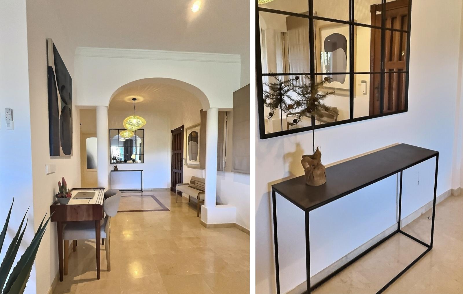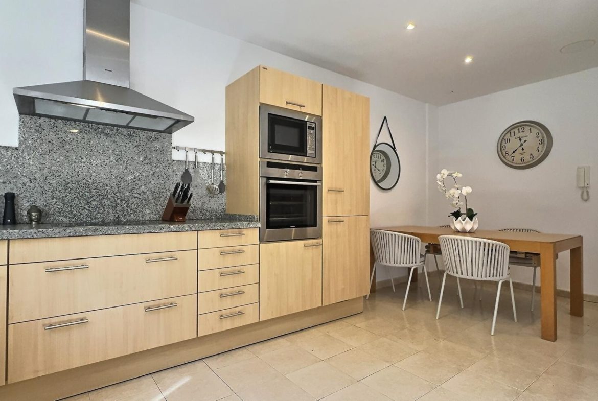 The fully fitted kitchen includes all modern appliances and is complemented by a separate utility room that houses the air-conditioning system, keeping the main living areas clean and uncluttered.