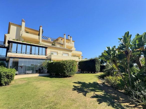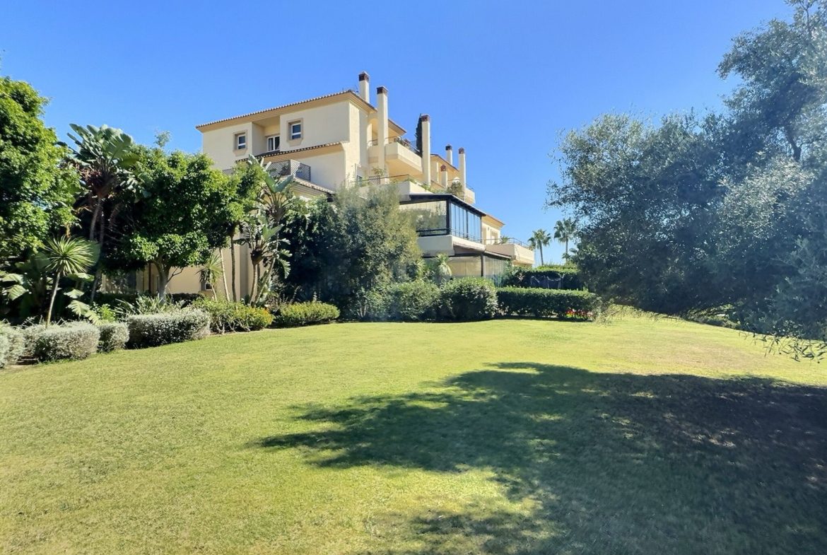 Set within the prestigious and gated San Roque Club, this exceptional three-bedroom ground-floor apartment offers space, privacy, and beautiful west-facing views over the communal gardens and the renowned San Roque Golf Course.