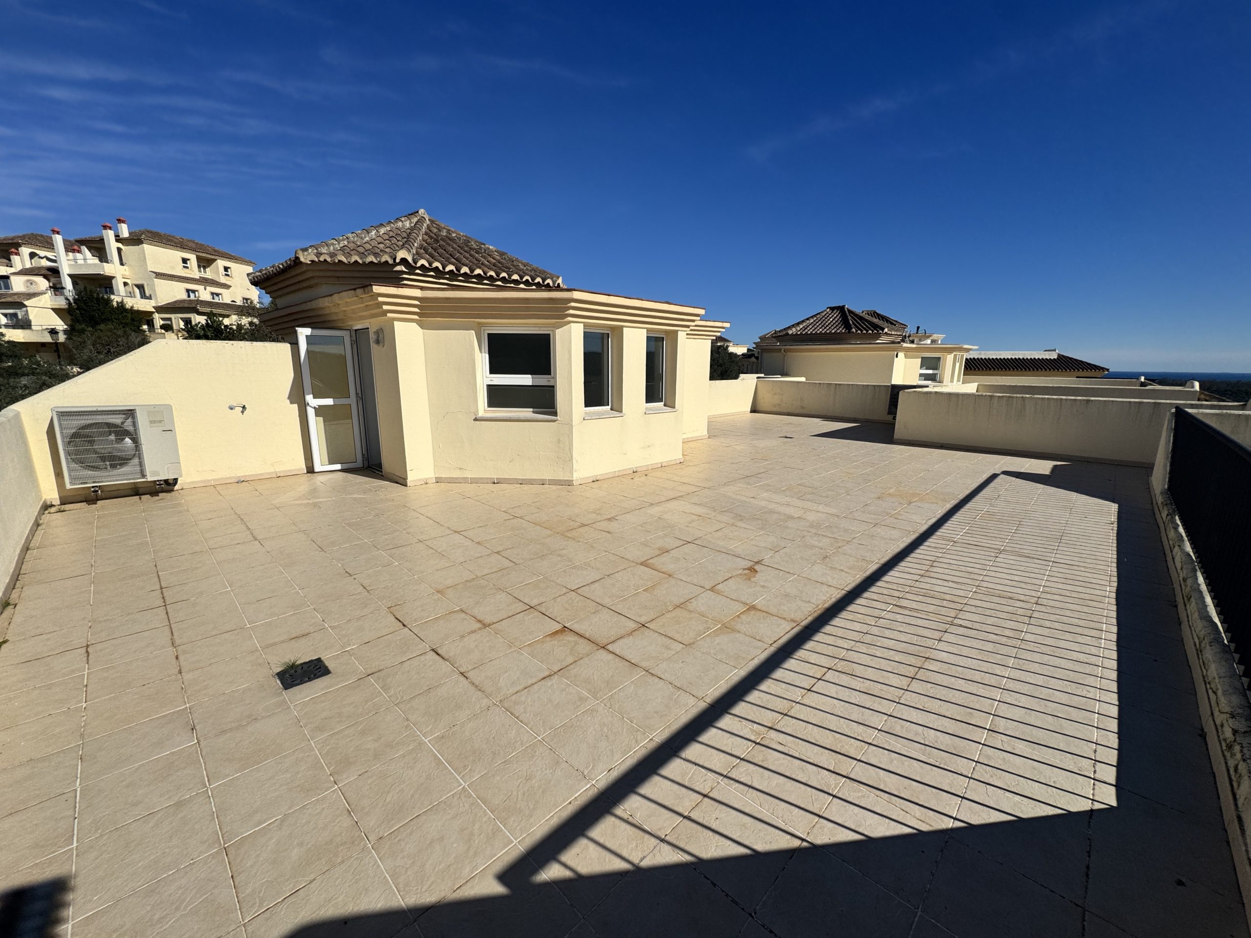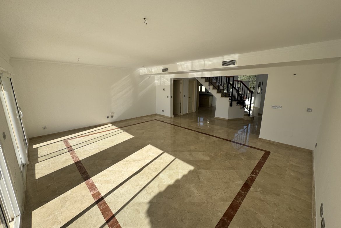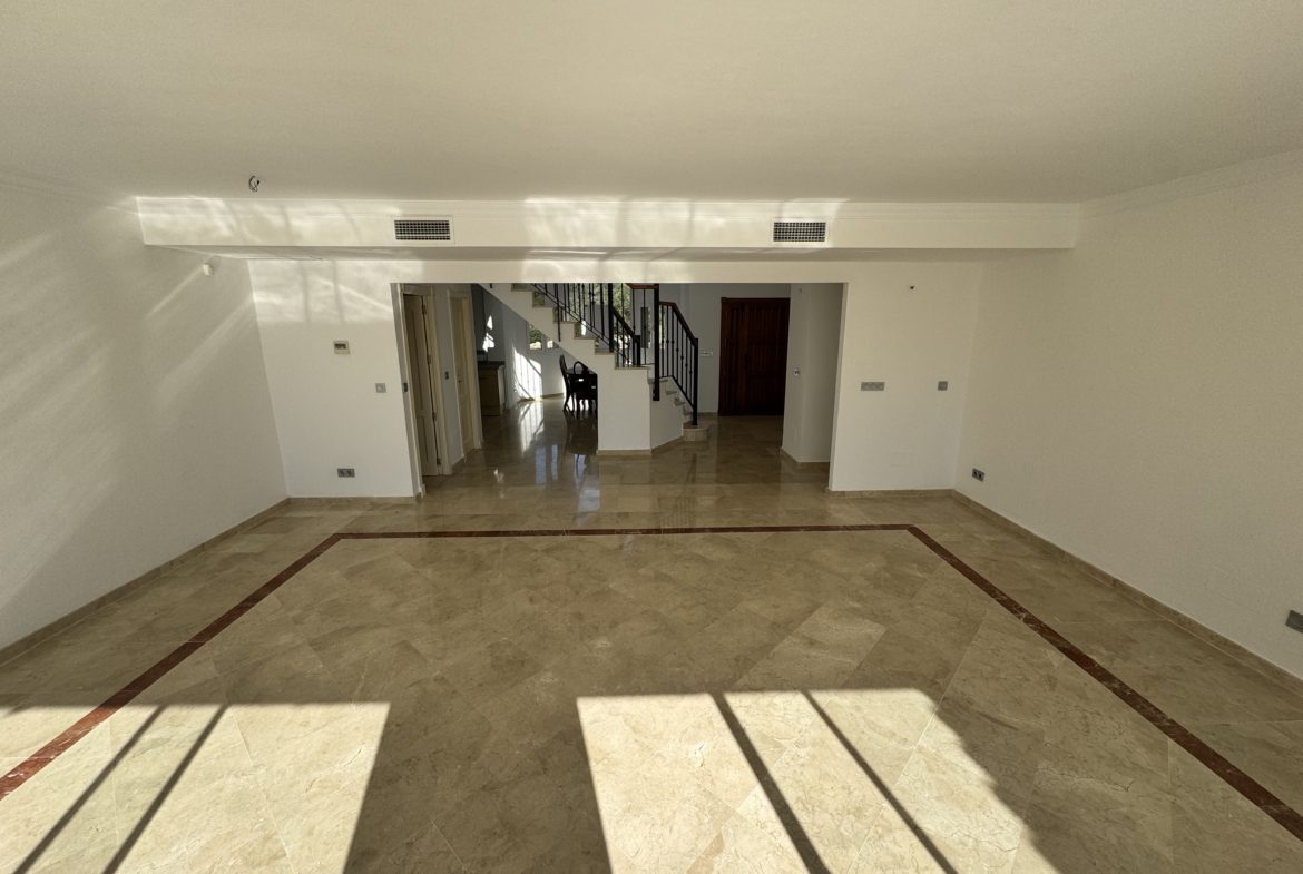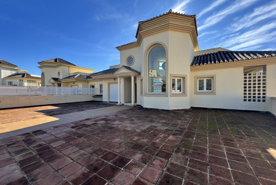 The property enjoys open views over the San Roque Golf Course, with a layout designed to maximise light, space, and outdoor living. Accommodation includes four generously sized bedrooms, all with fitted wardrobes, and four bathrooms, making the property suitable for both permanent living and high-quality holiday use.