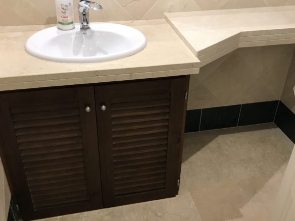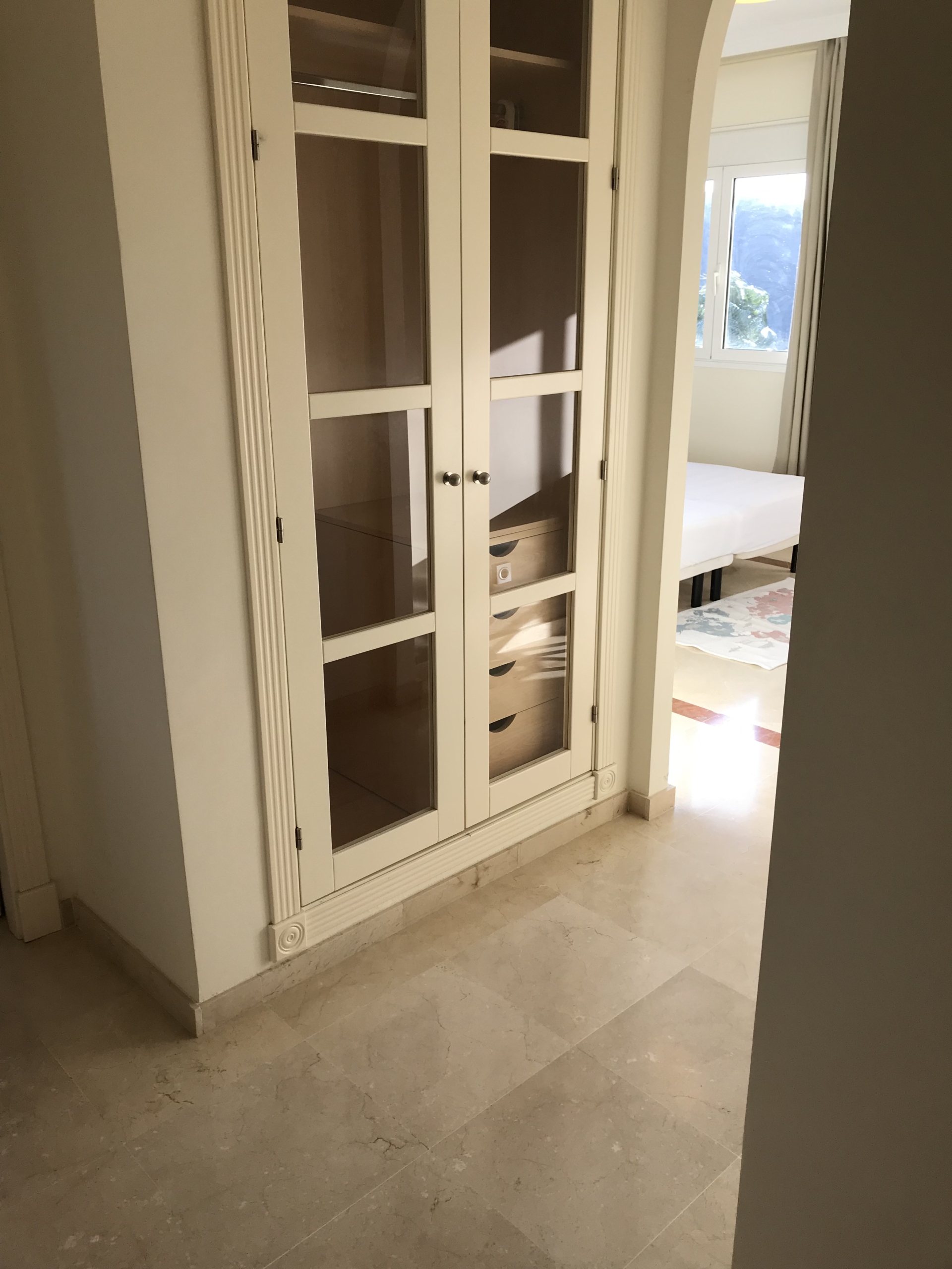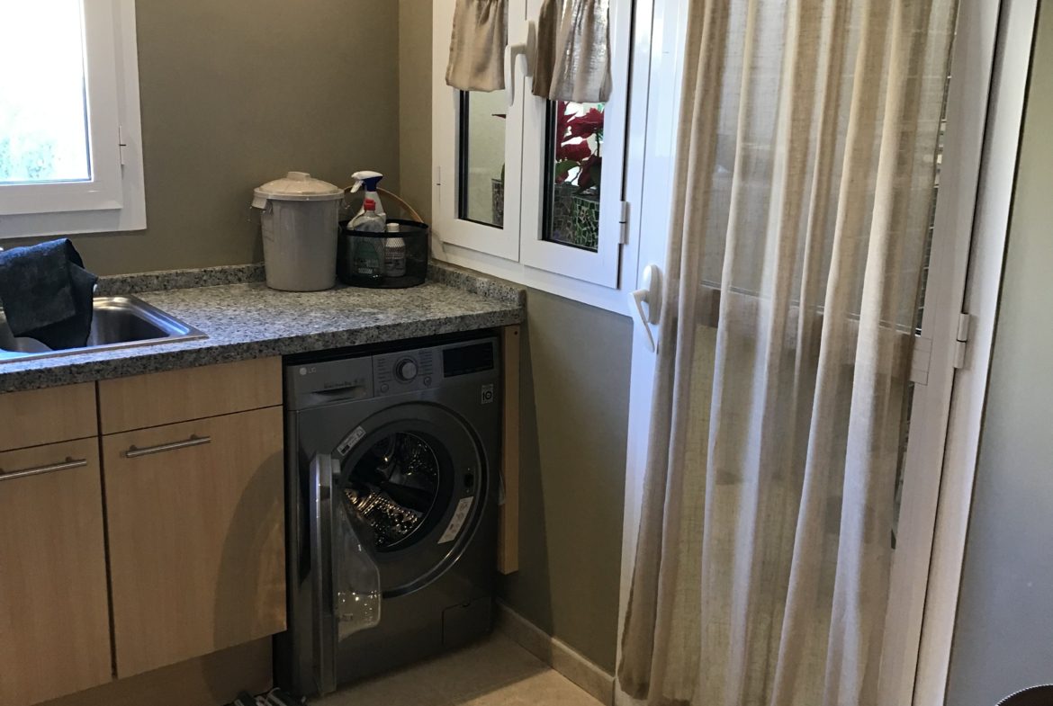 The apartment features three beautifully appointed double bedrooms, each with its own en-suite bathroom, plus a convenient guest WC, offering privacy and comfort for both residents and visitors alike. The fully fitted kitchen comes equipped with top-of-the-range Siemens appliances and is complemented by a separate utility room for added practicality. Air conditioning throughout ensures a perfect climate in every season.